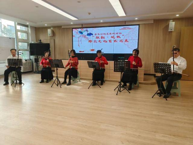 活动伊始,各个会场迅速升温。大厅展台上,布艺玩偶、非遗相框与精巧的木工作品琳琅满目,引人驻足。书画室内,朗诵与合唱的声浪未落,山水画课堂便已墨香氤氲;而另一侧的宣讲室,则在一阵悠扬的二胡声与行云流水的太极拳中,瞬间点燃了居民参与健康操的热情。现场欢声笑语,其乐融融。随后的手工活动更成为邻里交流的平台,大家协作互动,一件件独具匠心的作品在指尖诞生。