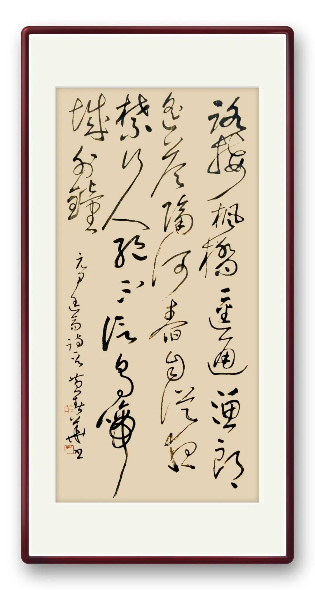 黄春华老师在这方面也借鉴了他们的经验,在他的草书作品中,藏锋与露锋的运用相得益彰。比如在书写 “风” 字时,起笔处采用藏锋,含蓄内敛,给人一种沉稳之感;而在笔画的收笔处,则运用露锋,锋芒毕露,增加了笔画的锐利感和灵动性。这种藏露锋的巧妙运用,使得笔画既具有内在的力量,又展现出了外在的灵动之美 ,与旭素草书的笔法特点一脉相承。通过对旭素笔法的继承,黄春华的草书线条展现出了灵动与力度的完美结合。灵动的线条使作品充满了生机与活力,仿佛具有生命一般,在纸上自由地舞动;而有力的线条则赋予了作品一种雄浑的气势和厚重的质感,使其在飘逸中不失稳健,灵动中蕴含力量。这种对旭素笔法的继承,为黄春华草书艺术风格的形成奠定了坚实的基础 。