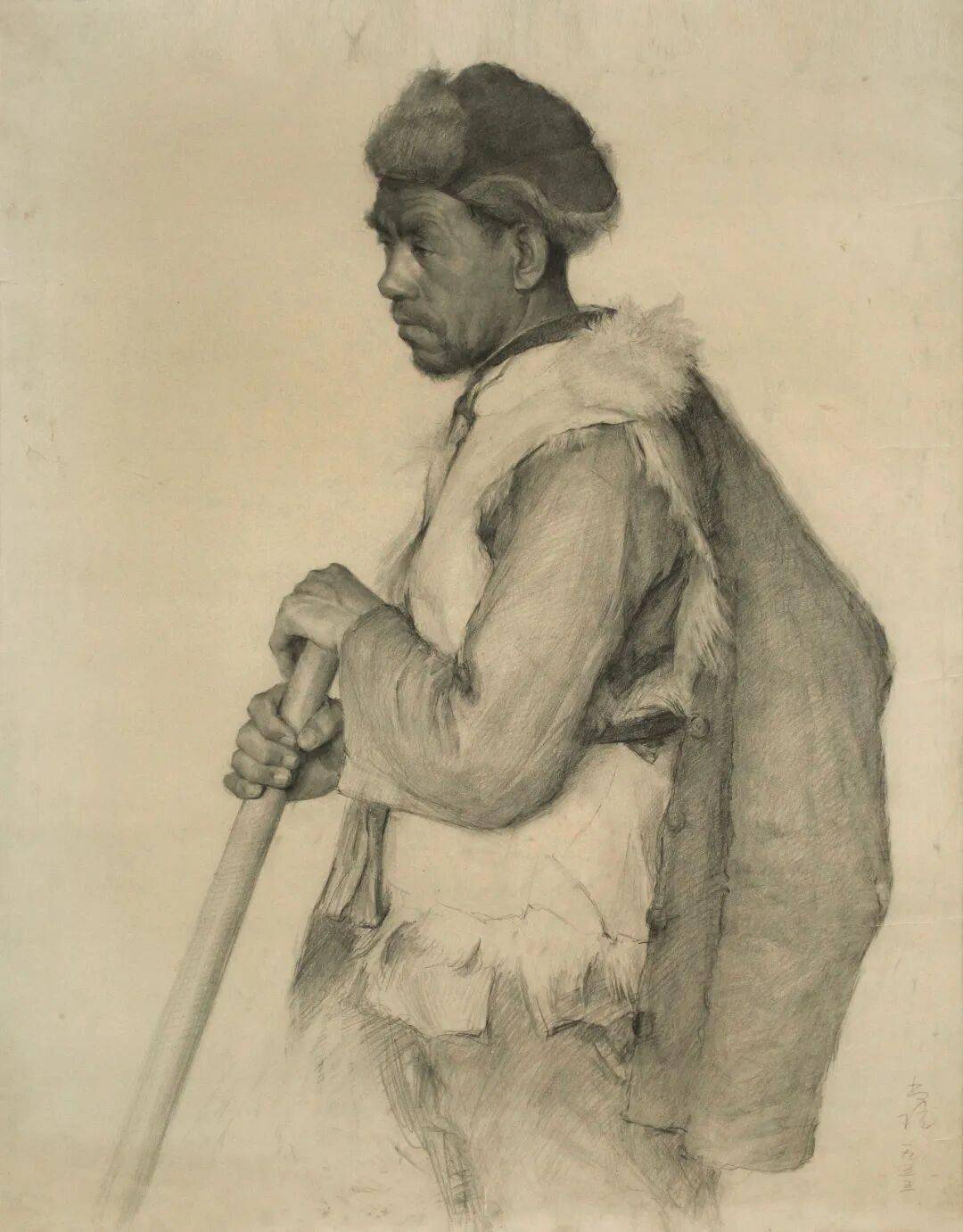 靳尚谊 拄棍的老人王大爷 76.1×61.3cm 纸上铅笔 1955年 中央美术学院美术馆藏