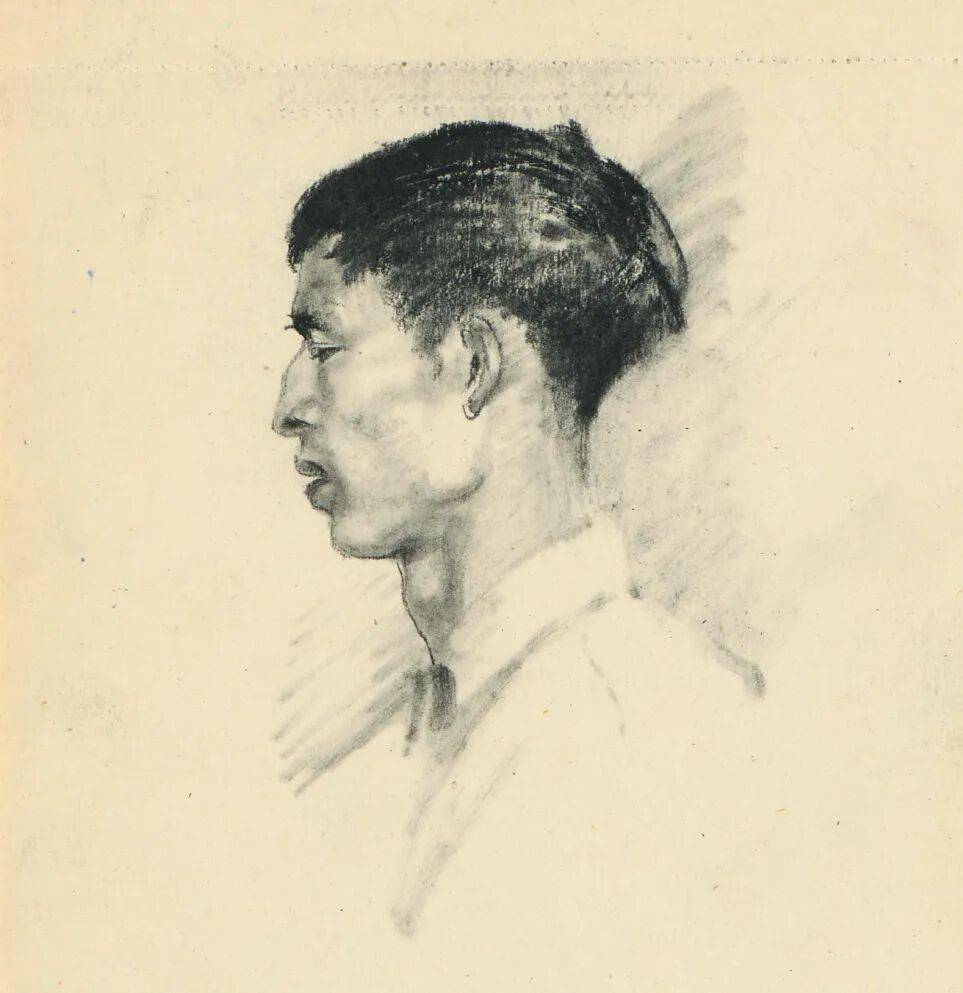 何孔德 人物侧面(局部) 17.7x12.4cm 1955年