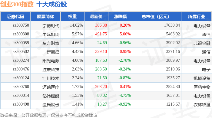 资金流向方面,创业300(399012)指数成份股当日主力资金净流出合计107.95亿元,游资资金净流入合计9.67亿元,散户资金净流入合计98.28亿元。成份股资金流向详情见下表: