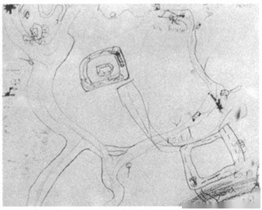 山姆越来越意识到他的保护性策略对他没有好处。他边画画边和我讲话,这是一幅带有中心交通环岛的道路系统图,很明显山姆要通过这幅画告诉我他感到被自己的自闭把戏所困的方式。他想到达右下角的"宝藏岛",那是整幅画中唯一有颜色的部分。但他无法逃脱他那死气沉沉、毫无色彩的"环岛"自闭行为的漩涡。山姆惊恐地告诉我:"环岛没有出口!"在这个阶段,家里、学校和治疗会谈中都爆发了非常紊乱的行为。他因被困而感到的挫败感到处爆发。他渴望得到"宝藏",他称呼我为“宝藏”,觉得我能把他从陷阱中解救出来。