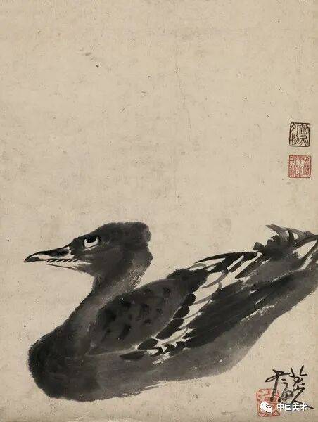 很难说八大山人的花鸟画、山水画有直接的师承关系,如他的花鸟画有明代林良、吕纪的若干影响,也有徐渭水墨的奔放痕迹,但他自己就是一个下笔自成面貌、不落常套的创新立派的画家。