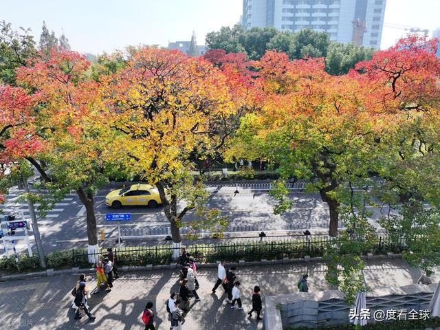最让人惊喜的莫过于环洲月季园旁的三色乌桕树,这可是玄武湖初冬的 “宝藏景点”。一株乌桕树上,竟然同时长着绿色、黄色、红色三种颜色的树叶,仿佛是大自然的 “调色大师” 精心绘制的作品。绿色的叶子充满生机,黄色的叶子明亮耀眼,红色的叶子热烈奔放,三种颜色交织在一起,层次分明,极具视觉冲击力。