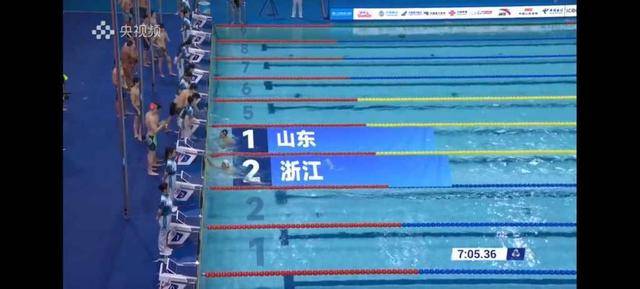 11月15日晚,全运会游泳项目当中,张展硕在最后一棒逆转汪顺,帮助山东队逆转浙江,获得男子4×200米自由泳接力金牌,成绩为7:05.36。