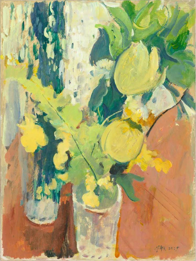 家学熏陶与国美重视线性的传统,以及东方绘画对意境,特别是宋画对格物的尊重和于精微处见广大的宇宙观,在王老师的作品中得到了回响,这赋予他的作品以鲜明的东方意蕴、特色和线条的曼妙变化。王老师十分重视形式的经营,同时直抵关于鲜活之物、关于大有之年、关于岁月、关于诗意栖居的生活世界。当他将眼中所见转化到画布上,并将精神性的东西浇筑其中,我们能明显感觉到作品中的现实意味,同时又因其巧妙有效的转化,使真实物像生发出一种与现实若即若离的含蓄、典雅与生动之美。