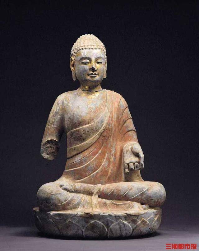 贴金彩绘佛坐像。湖南博物馆供图