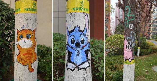 用色彩增添美好,用画笔勾勒幸福。小区主干道的两侧是海绵宝宝和派大星,是小猫小狗和小兔子,这些跃然树上的画作,不仅仅是色彩的堆砌,更是大学生志愿者们用青春与才华,为社区寄予的最真挚、最美好的祝福。