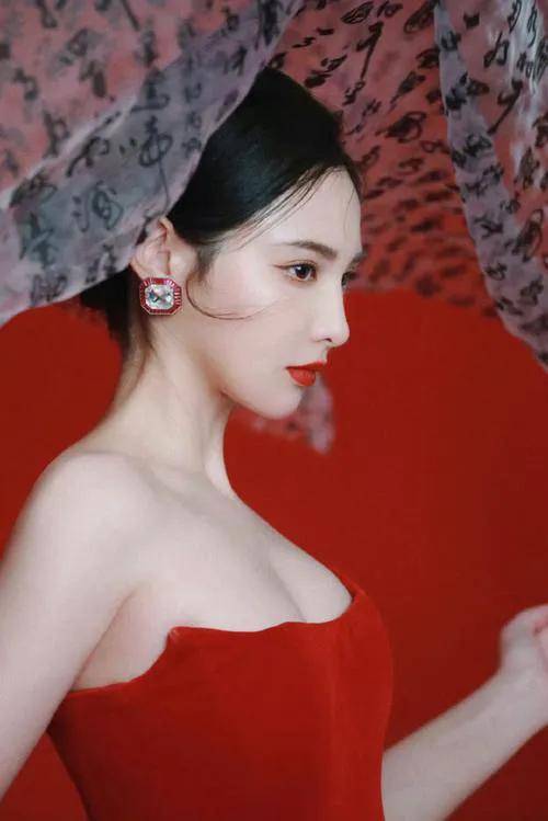 彭小苒穿着红色抹胸衣裙,头顶黑白纱布,俏脸的脸颊,明亮的秀眸,烈焰的红唇,傲人的事业线,娇嫩如雪的肌肤,曼妙的身材曲线,绝对性感撩人!