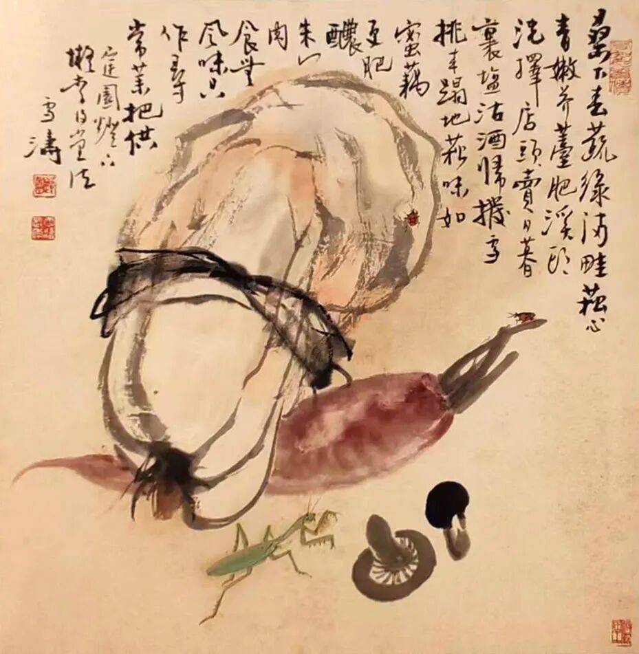 款识:桑下春蔬绿满畦,菘心青嫩芥苔肥。溪头洗择店头卖,日暮里盐沽酒归。拨雪挑来蹋地崧,味如蜜藕更肥浓。朱门肉食无风味,只作寻常菜把供。迟园灯下拟李复堂法,雪涛。