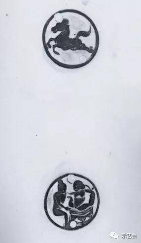 马老拓片此品,应即本实物,马形肩脊梁处以及女形中央有凹点,拓片上均有相应反映。