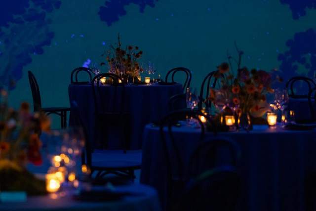 这场玄宴最惊艳的巧思,是把餐桌搬进了影像与声场交织的艺术空间。大卫·霍克尼耗时三年打造的沉浸式展览,以多重视角与时间叠影重构认知,而这份艺术理念被完整转译到了餐盘之上 —— 由黑珍珠餐厅 “食庐” 主理、THE TABLE Studio 联合策划,每一道菜都是对霍克尼作品的味觉回应。