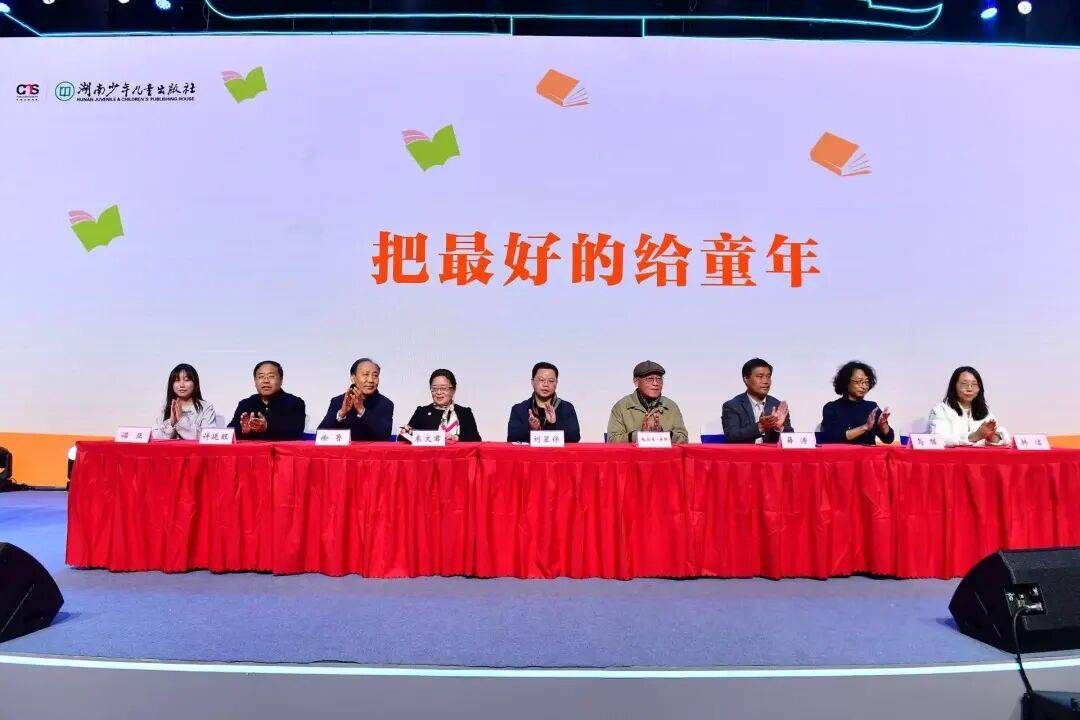 2025 年 11 月 19 日下午,湖南国际会展中心(芒果馆)书香满溢,“童心‘湘’聚,童创未来”岳麓书会儿童阅读嘉年华盛大开启。这场凝聚中国儿童文学中坚力量、彰显湖南儿童文学高地建设成果的盛会,以“湘版启新篇·梦想正当时”“湘水汇流长·四十五载颂”“华彩绘世界·笔韵传四海”“童心乐游园·文趣满星城”四个篇章,为现场观众奉献了一场传承与创新交融的儿童阅读盛宴,展现了儿童文学薪火相传的勃勃生机。中国作协副主席李敬泽,中国作协主席团委员、北京大学文学讲习所所长曹文轩,中国作协社联部主任包宏烈,湖南出版投资控股集团党委副书记、副董事长、中南传媒副董事长李晖,湖南出版投资控股集团有限公司党委委员、中南出版传媒集团股份有限公司董事、总经理周亦翔,湖南省作协主席、湖南师范大学文学院教授、儿童文学作家汤素兰,著名绘本画家蔡皋,北京师范大学文学院教授、图画书创作研究中心主任陈晖,湖南少年儿童出版社党总支书记、董事刘星保出席了活动。其中《全国优秀儿童文学奖获奖作家短篇作品典藏》新书首发及多位重磅儿童文学作家集体签约两大环节,成为全场关注的核心亮点。