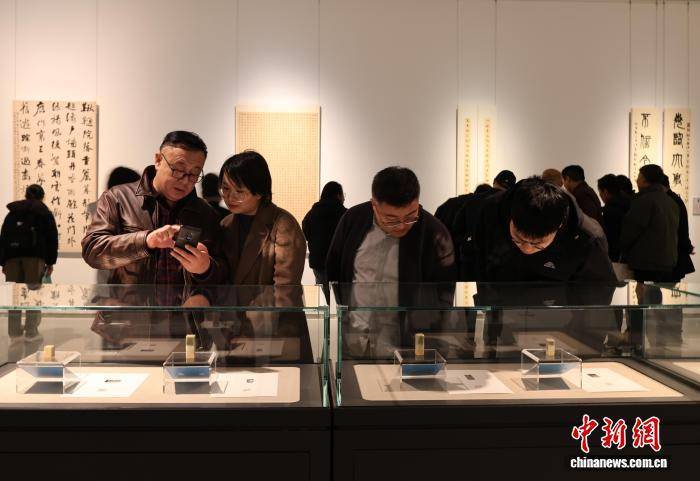 11月20日,山东济南,观众在展厅内欣赏优秀篆刻作品。中新社记者 赵晓 摄