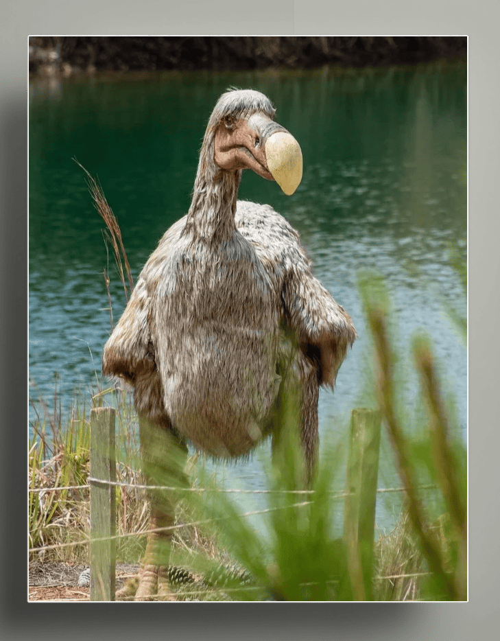 吕文扬的工作室堆满了渡渡鸟的骨骼资料、生态复原图和毛里求斯的植被照片。他闭目凝神时,仿佛能听见渡渡鸟笨拙的脚步声,看见它们在热带雨林中蹒跚而行。这种被人类记录为“愚蠢”的鸟类,在他的理解中却是和平的象征——它们不曾学会恐惧,因为岛上没有天敌,直至人类到来。吕文扬的笔触饱含愧疚与敬意,他不仅要画出渡渡鸟的外形,更要复活它的灵魂。