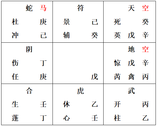 四柱:戊戌 壬戌 乙未 癸未 阴5局 直符:天辅 直使:杜门