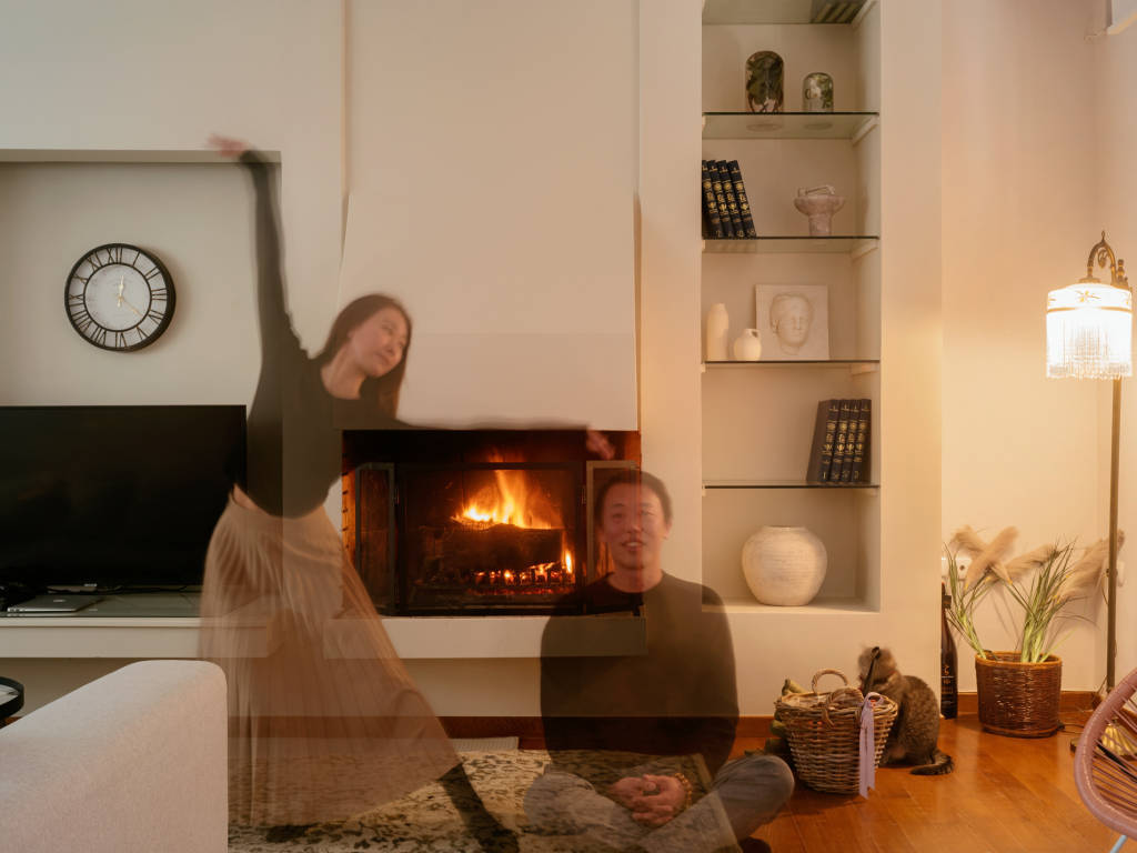 在雅典生活了7年的华人移民夫妇,当他们刚搬进社区的第一个复活节,一位希腊邻居在半夜拿来一支点燃的蜡烛,微弱的烛火称是从耶路撒冷传递而来的,火种是信仰和希望。在拍摄这张照片时,夫妇俩点燃了家中的壁火。 Projection 系列之一,惟祺作品