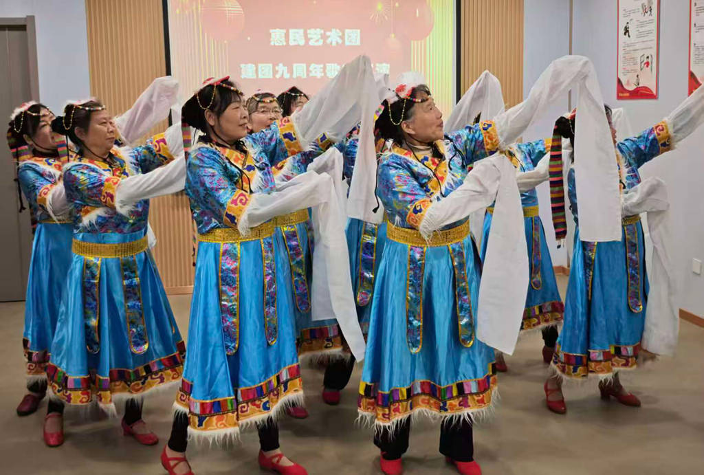 今天是惠民艺术团最开心的日子,他们穿上盛装,打扮漂亮,载歌载舞分享快乐,惠民艺团建团9周年庆典,惠民术艺团在艰难险阻中前行着,历经千辛万苦,和坎坷不平,他们以团为荣,荣辱与共,在这几年间,歌友们和团队有了深厚的感情,大家积极为团队付出,不记得失,积极分子层出不穷,真正的体现了,我为人人,人人为团队的高尚品德!