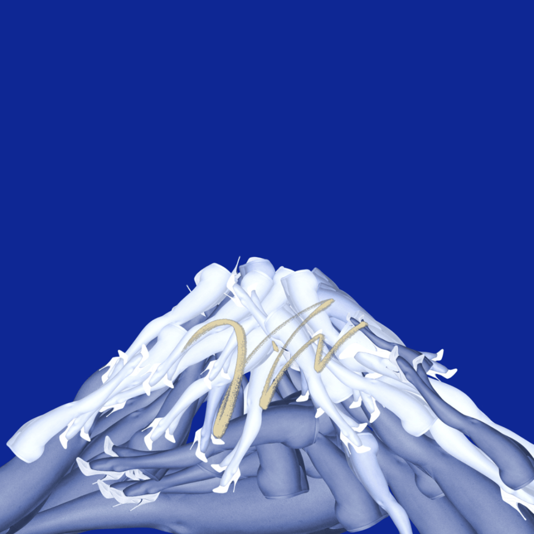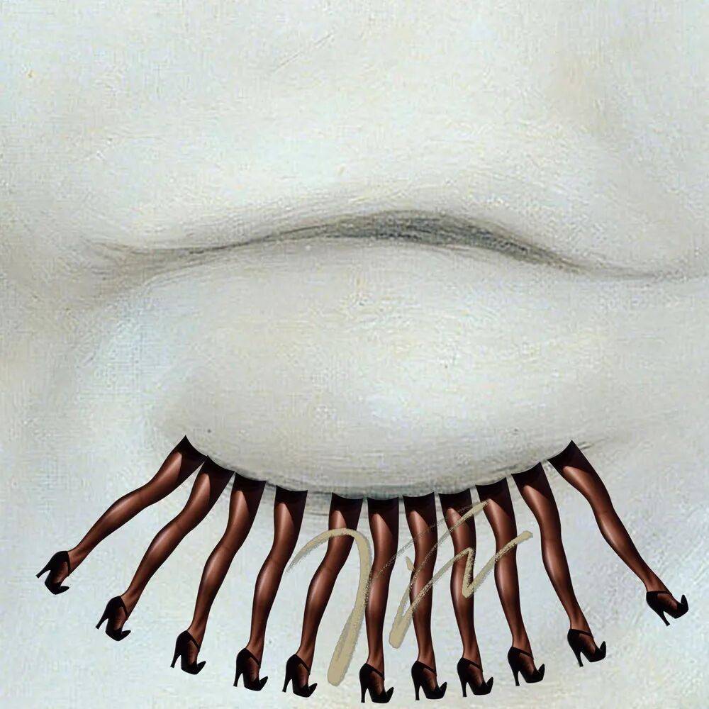 他将这些数字拼贴中的小元素视为未来大作品中的局部,如同仓库中的零件,等待被调用与重组。在该系列中,他反复运用Pin-Up海报女郎的腿部线条、美式文化符号等元素,并借鉴日本画家葛饰北斋的浮世绘作品《神奈川冲浪里》的分形学逻辑,使单一元素重复组合为具有韵律感的新形态。