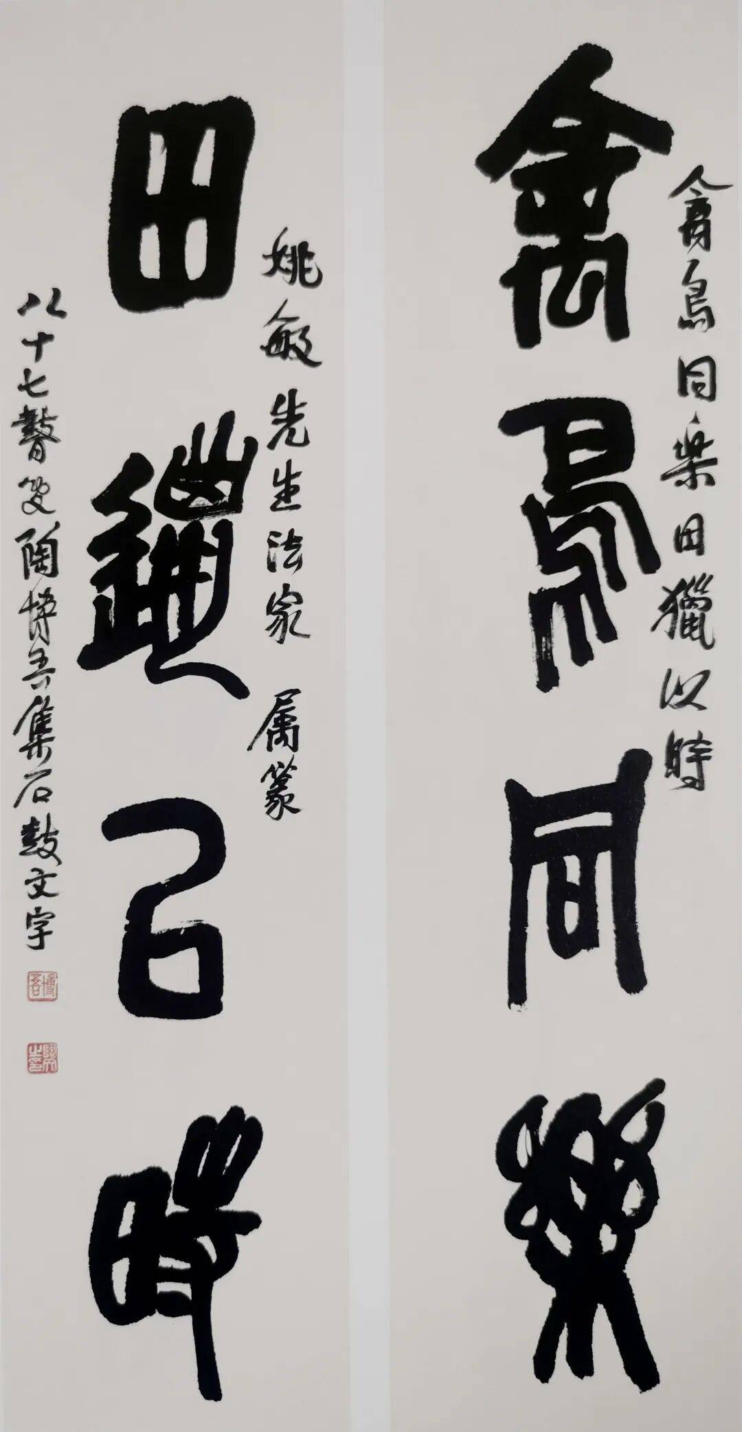 陶博吾(1900--1996),江西彭泽人。名文,字博吾,别署白湖散人、栗里后人。自幼喜习书画诗文。1925年考入南京美术专科学校,从沈溪桥、梁公约、谢公展诸先生学习书画。1929年考入上海昌明美术专科学校,从黄宾虹、王一亭、潘天寿、诸闻韵、贺天健等先生学习书画,从曹拙巢先生学习诗文。生性谈泊名利,不求闻达。艺术上极为推崇吴昌硕,一生受其影响至深。诗、书、画造诣皆深。著述颇丰,主要有《习篆一径》、《石鼓文集联》、《散氏盘集联》、《博吾诗存》、《博吾词存》、《博吾联存》、《题画诗抄》、《博吾随笔》等。