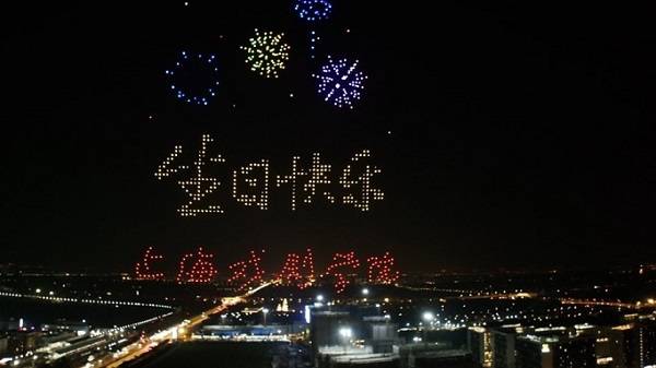 上海戏剧学院昌林路校区主广场日前被光影点亮,作为该校建校80周年校庆系列活动的“科技高光”,一场以“戏剧之源,历史回响”为主题的无人机编队灯光秀震撼上演。