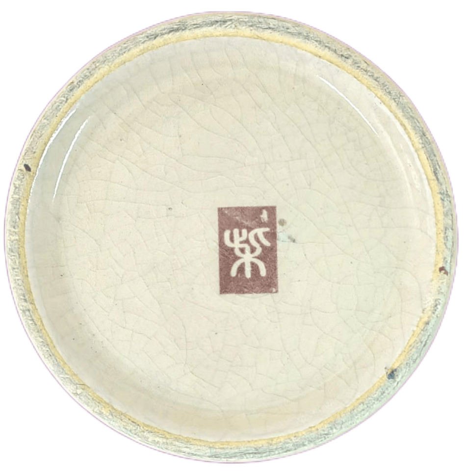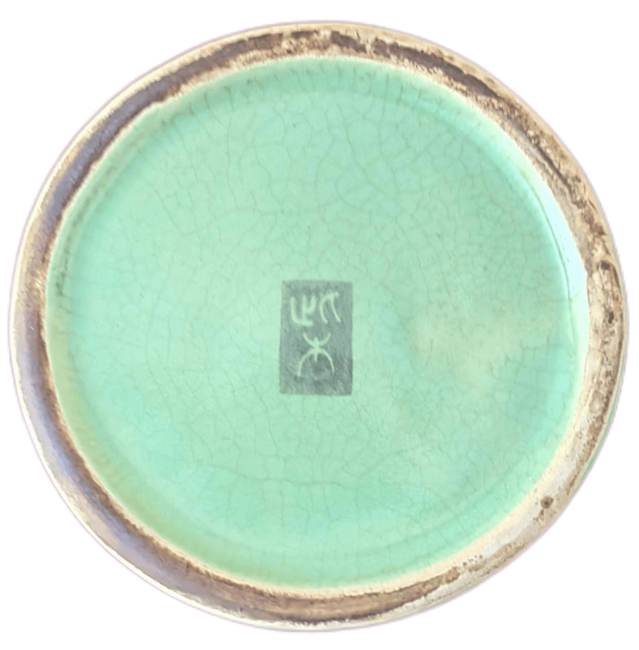 高25.2㎝。月如钩,李白戴官帽,着官服背靠上弦弯月,独酌豪饮且题诗一首“花间一壶酒,独酌无相亲。举杯邀明月,对影成三人”。模具成型,施青绿釉,李白方脸,大耳、浓眉,长须,眯眯眼似醉酒之意,底模印篆书“柴”字款。(量子年份检测五代晚期)