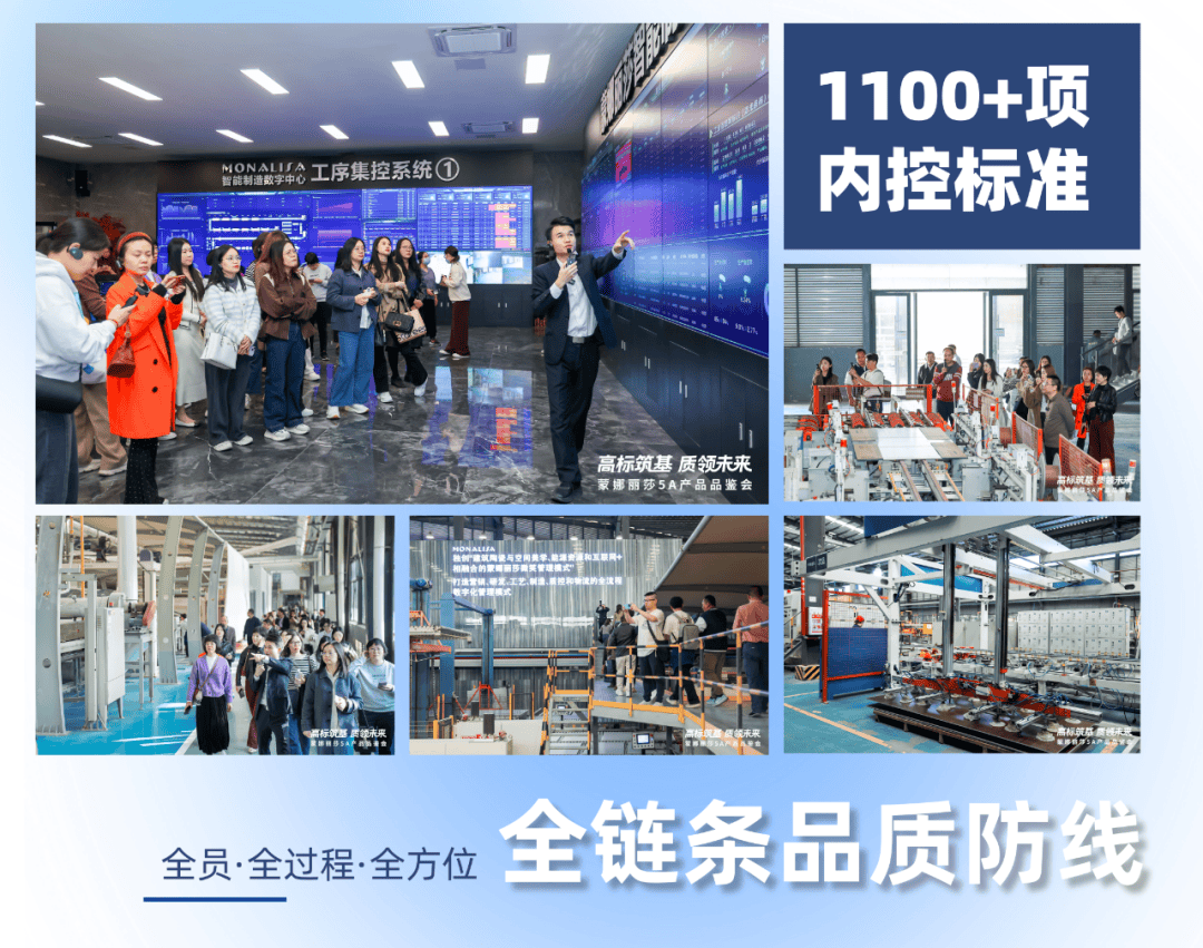 “国家标准从不是天花板,而是企业自我超越的起跑线”。集团品质中心总监潘炳宇的介绍,在嘉宾走进5A生产线过程中得到直观印证。蒙娜丽莎5A产品生产线已构建“全流程、全要素、全周期”的闭环质控模式,将1100多项严于国标的内控标准深度嵌入研发、生产、供应链各个关键环节,并借助数字化溯源系统实现从原料到成品的全程可追溯与可调控。