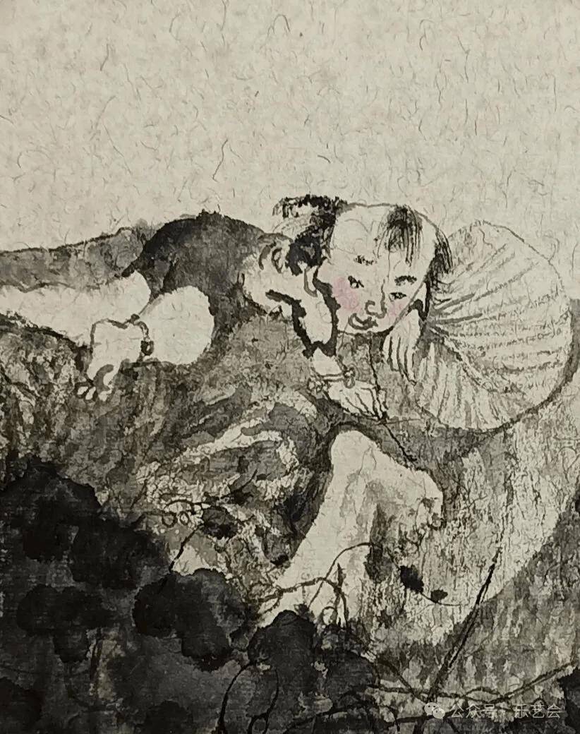 此次展出的作品,既有赤膊嬉闹的顽皮童趣,更有爷孙相依的脉脉温情。画家以水墨为舟,载我们穿越时光,在集体记忆的深处打捞起那份永恒的柔软与童真。