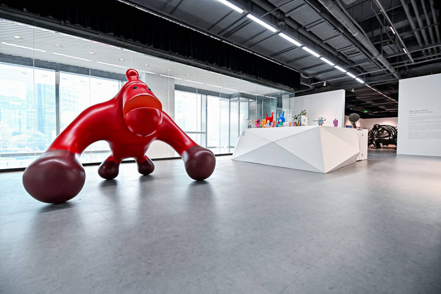 雕塑作品则以多元材质呈现奇趣质感,玻璃钢、铸铜、不锈钢等材质的运用,让精灵、萌物等奇幻形象跃然眼前,既有夸张造型传递的童真趣味,也有金属质感带来的现代审美,与油画作品形成材质与视觉的巧妙对话,丰富了展览的层次与体验。
