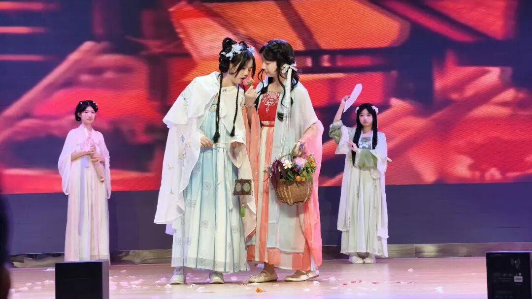 器乐社《如果声音不记得》融合小提琴、吉他与钢琴,营造深情空间。古风社《寄明月》执扇起舞,古典与灵动相融。广播站小品《甄嬛传新编》幽默改编,笑点不断。古风社《织梦行云间》汉服走秀,以“愿山河无恙”传递家国情怀。配音社《童年乐之章》演绎童话纯真,动漫社舞台高还原cos,活力满分。心理社《不被定义的自己》鼓励打破定义,拥抱自我。街舞社《Like Jennie》柔刚并济,器乐社《第一天》以明快节奏压轴,寓意怀抱初心,迎接崭新每一天!