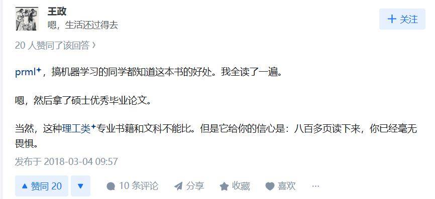 知乎1.8万粉丝、汽车之家后台开发工程师认为:“在机器学习领域,本书几乎是每个人都会读的。”