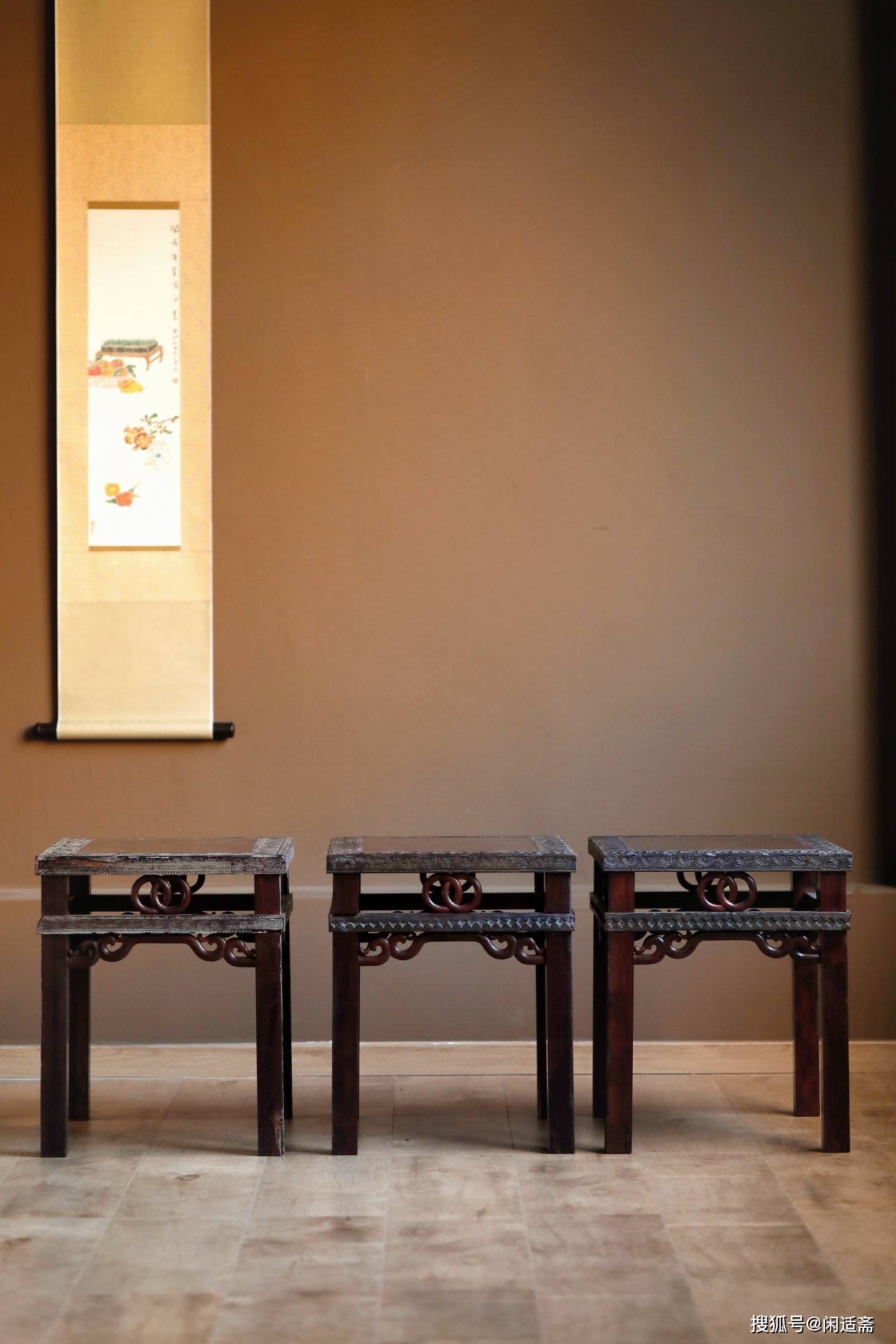 将这套方凳置于空间之中,无论是搭配明清风格的茶室,作为品茗坐具,与茶桌相映成趣,彰显中式雅致;还是融入现代侘寂风客厅,作为休闲坐凳,其沉厚的质感与沉静的韵味都能完美融入。它不只是一件供人休憩的家具,更是小叶紫檀拆房老料的时光见证、传统榫卯工艺的活态传承,在同类作品中树立了“古韵与现代表达”融合的典范,让时光的艺术在日常使用中得以延续。