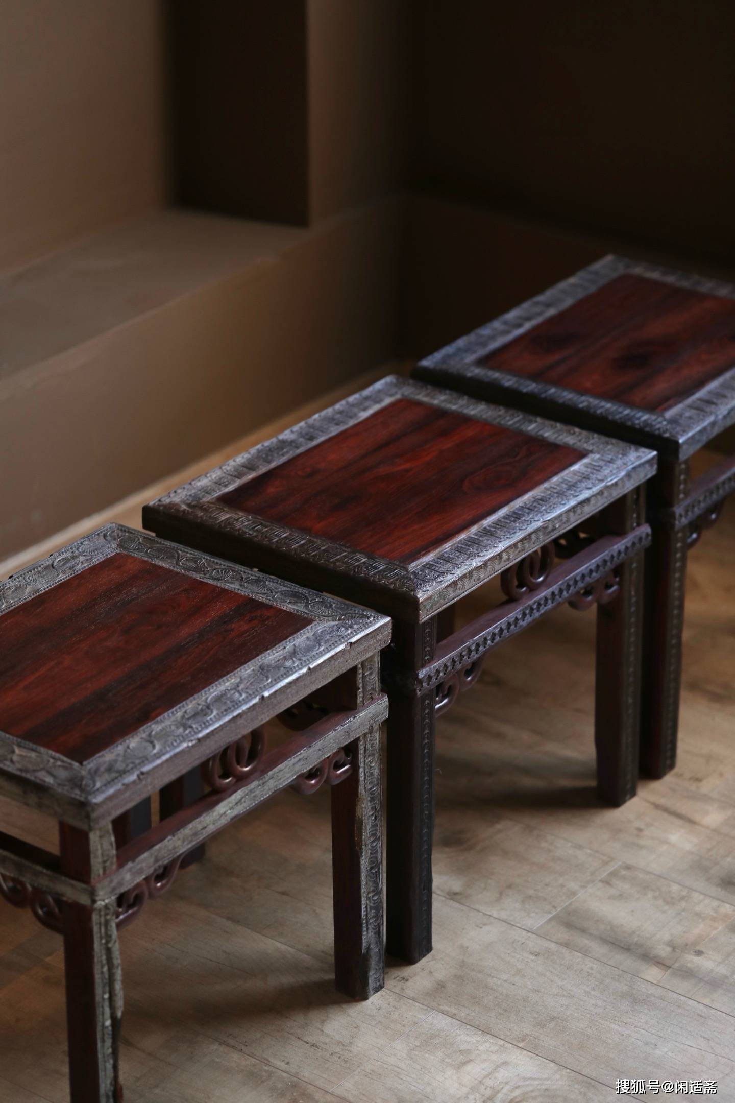 这套方凳,便以小叶紫檀拆房老料为核心用材,将老料的时光质感与传统工艺的巧思完美融合,在同类作品中堪称典范。
