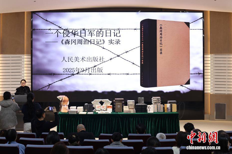 12月2日,江苏南京,侵华日军南京大屠杀遇难同胞纪念馆举行“铭记历史、珍爱和平——2025年度国家公祭主题新书发布会”。会上发布了一批反映中国人民抗日战争、揭露日本军国主义战争罪行、弘扬伟大抗战精神的新作,包括《法者大义:亲友口述中的战后审判亲历者》《苦难与抗争:抗战中南京战争遗址调查》《一个侵华日军的日记——〈森冈周治日记〉实录》等。图为新书发布会现场。中新社记者 泱波 摄