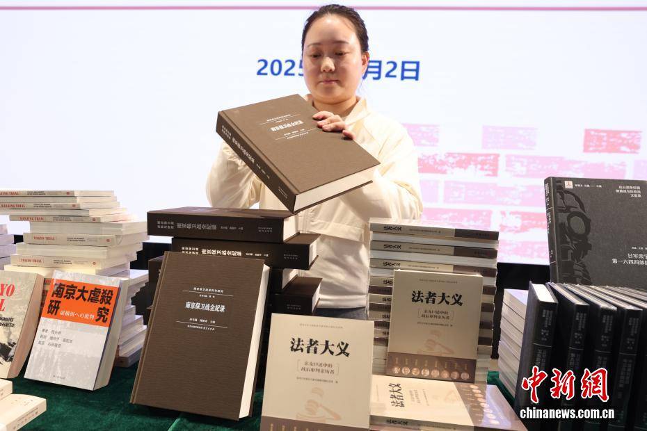 12月2日,江苏南京,侵华日军南京大屠杀遇难同胞纪念馆举行“铭记历史、珍爱和平——2025年度国家公祭主题新书发布会”。会上发布了一批反映中国人民抗日战争、揭露日本军国主义战争罪行、弘扬伟大抗战精神的新作,包括《法者大义:亲友口述中的战后审判亲历者》《苦难与抗争:抗战中南京战争遗址调查》《一个侵华日军的日记——〈森冈周治日记〉实录》等。图为工作人员将出版的新书摆放整齐。中新社记者 泱波 摄
