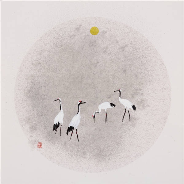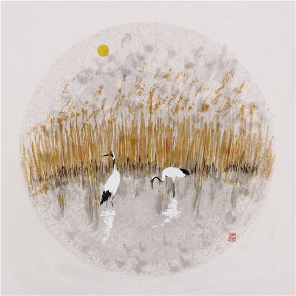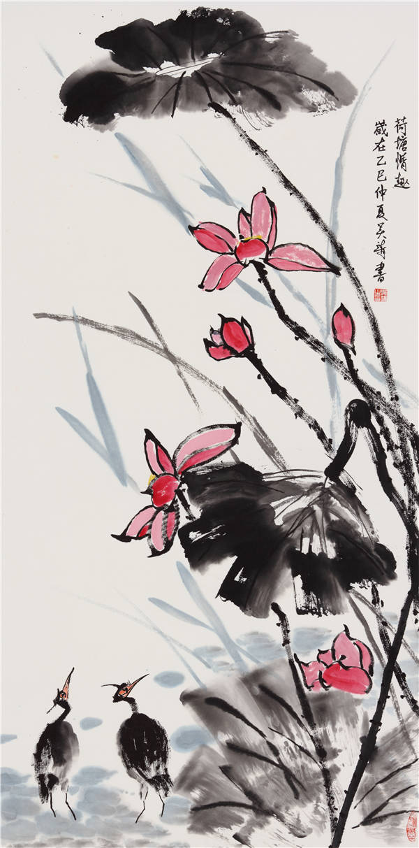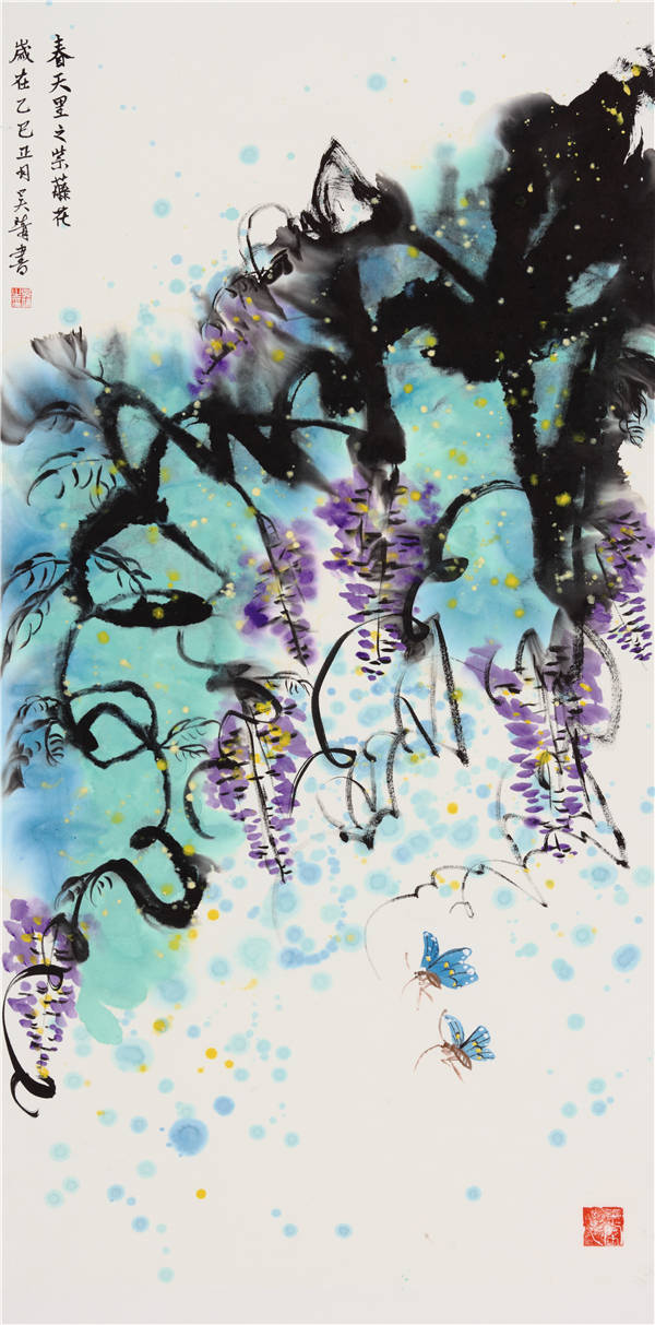 吴靖笔下的精妙,远非止于画面的荷塘月夜、紫藤鹤影。其真正动人之处,在于“画外之意”。艺术家以笔墨为引,以诗心为魂,使每一幅作品都成为一个完整的诗意世界。观者所见的,不仅是四季的形态与色彩,更是流淌其中的时序韵律与生命哲思。乃“象外之象,景外之景”,其境界已然超越单纯的视觉美感。
