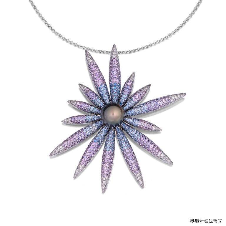 在大溪地黑珍珠的四周,环绕小克拉彩色蓝宝石演绎的极光,让人仿佛置身于北极的夜空之下,亲眼目睹了这一壮丽的美景~
