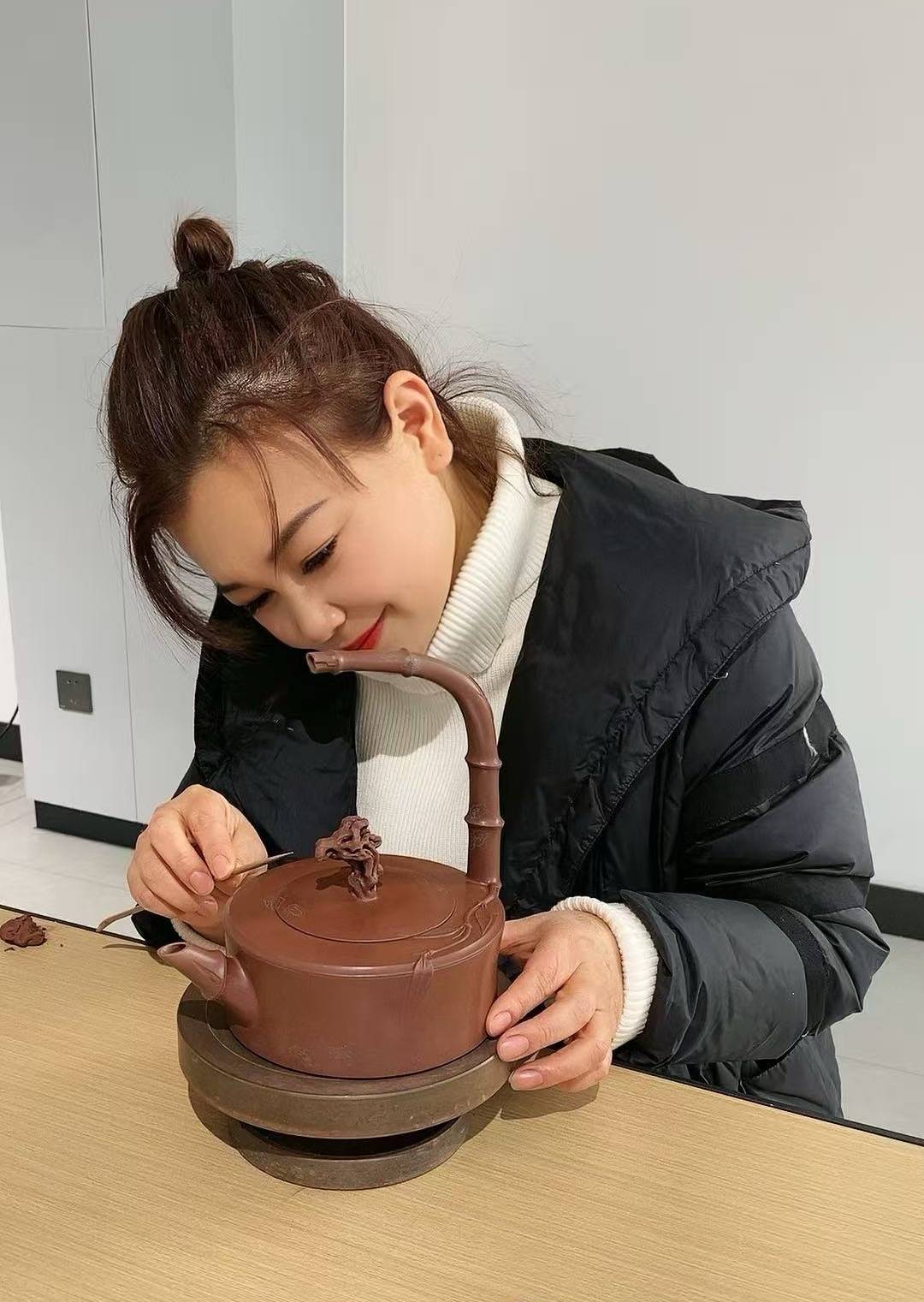 谈及传承与推广,刘卿荧的语气多了几分责任与担当。作为江苏信息职业技术学院紫砂工艺导师、第七届陶都宜兴优秀青年陶艺家,她的工作室既是创作空间,更是传承课堂。“紫砂不能只躺在博物馆里,要让更多年轻人爱上它。”她毫无保留地将揉泥、拍身桶、修坯、装饰等技艺传授给学生,更强调“做壶先做人”的匠人精神。如今,她的学生遍布全国,多人在省级手工制陶大赛中获奖,成为紫砂行业的新生力量。与此同时,她还积极推动紫砂文化走向世界,2024年不仅荣获第二十七届世界禅茶雅会“国际禅茶文化友谊奖”,更被泰国中华文化促进会授予“中泰文化交流使者”称号,让紫砂艺术成为连接中外的文化纽带。