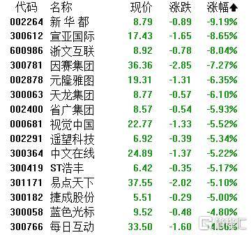 快手概念领跌,新华都跌超9%,宣亚国际、浙文互联、因赛集团、元隆雅图、天龙集团、省广集团等跟跌。