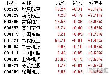 机场航运板块拉升,华夏航空涨超3%,南方航空、吉祥航空、厦门空港、中国东航、春秋航空、白云机场等跟涨。
