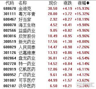 流感概念继续活跃,金迪克、粤万年青涨超15%,好当家、海王生物、益盛药业、欣贺股份、新光药业等跟涨。