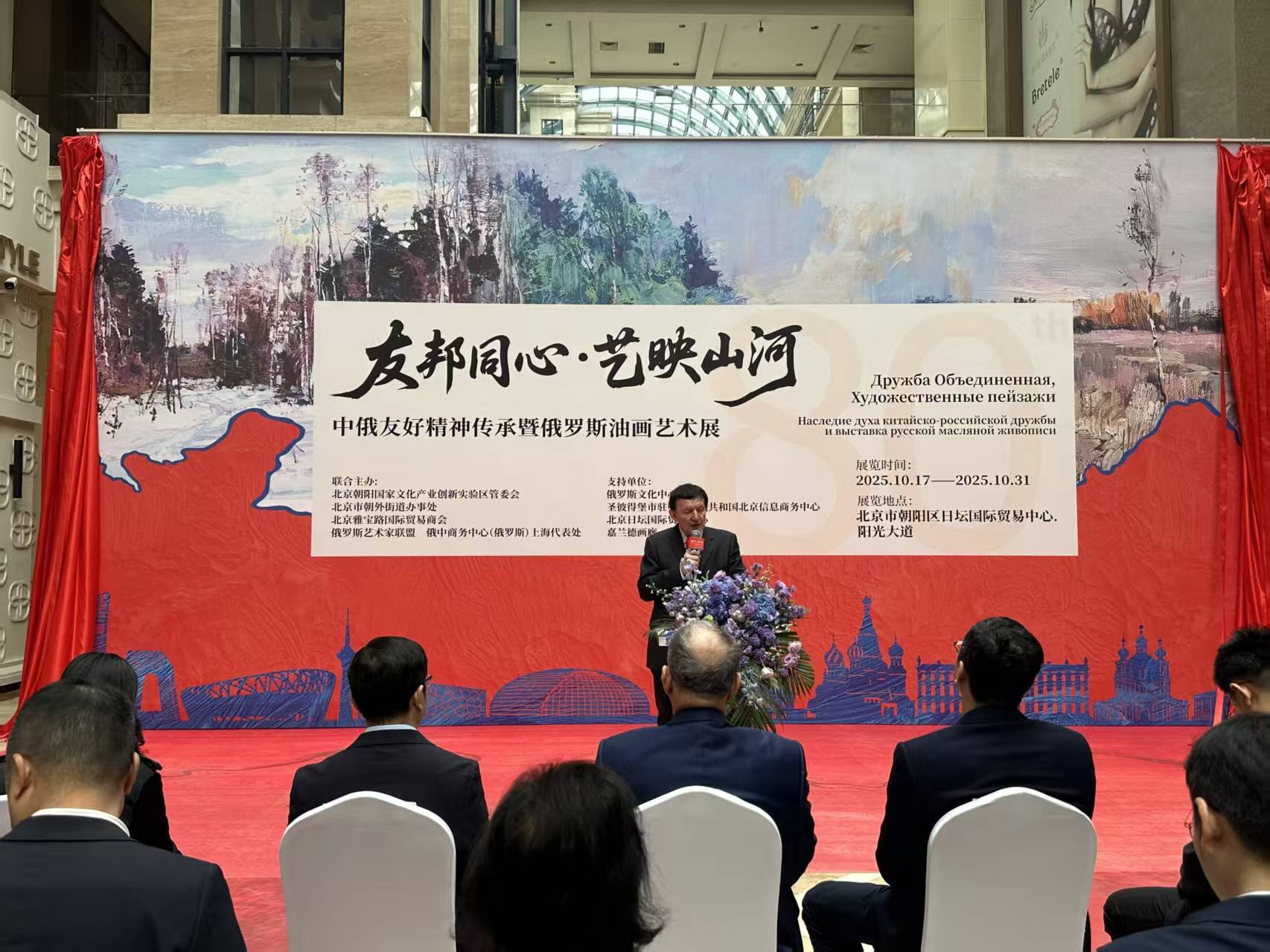 10月17日上午,由北京朝阳国家文化产业创新实验区管理委员会、北京市朝外街道办事处、雅宝路国际贸易商会联合俄罗斯艺术家联盟、俄中商务中心(俄罗斯)上海代表处共同主办的“友邦同心·艺映山河”中俄友好精神传承暨俄罗斯油画艺术展在雅宝路日坛国际中心隆重开幕。