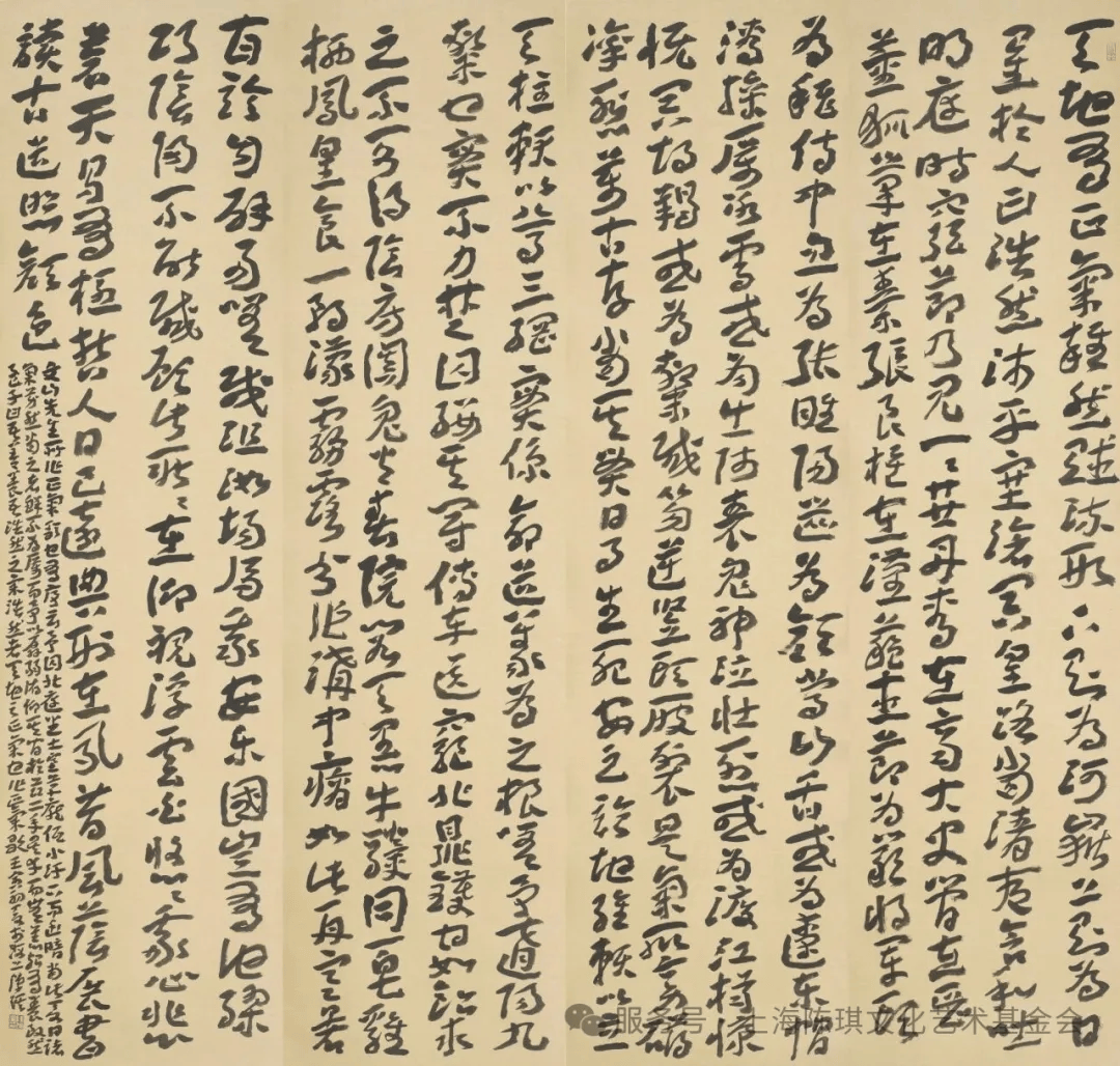 此次展览以章草书法为核心脉络,他深研《急就章》《平复帖》等经典法帖,兼收魏碑的雄厚与章草的古意,又融入明清诸家的奇崛意趣,更汲取当代章草巨擘王蘧常的艺术精髓,形成“古朴灵动、沉厚率真”的独特风格。恰如上海市书法家协会主席丁申阳在序中所言:“陈琪的书法不同于一般‘画家字’,他临摹碑帖不辍,融会贯通,将书法精神融入绘画,又在书法中展现画的气韵,是‘书画同源’的最佳体现。他对当代章草巨擘王蘧常的作品进行了细微研究,融会贯通,逐渐形成自己的风格。”
