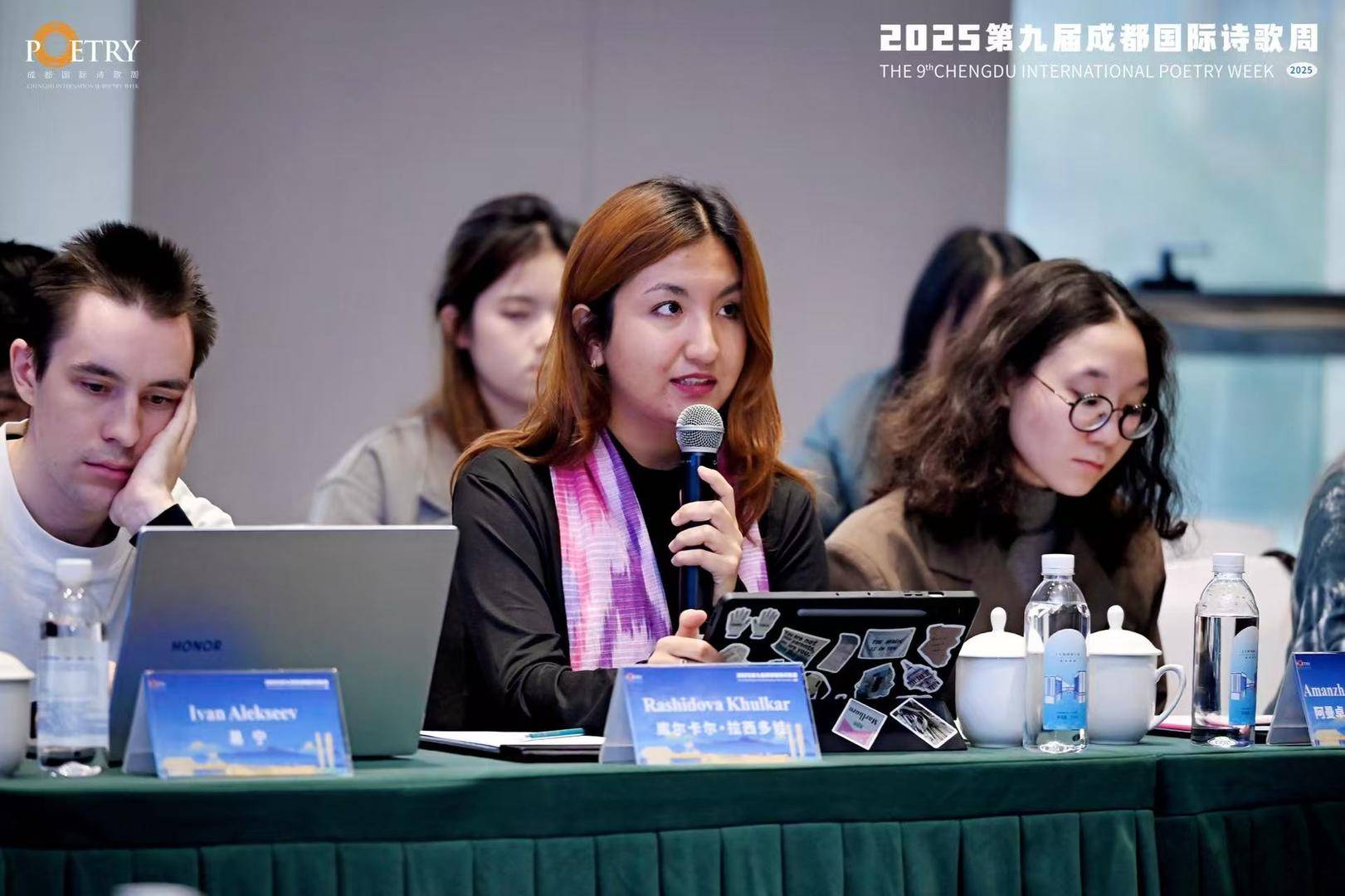 乌兹别克斯坦诗人库尔卡尔·拉西多娃和哈萨克斯坦诗人阿曼卓·阿克赞·阿斯卡尔基兹,分别向现场的诗人们介绍了本国本民族诗歌文学历史与当下创作现状。