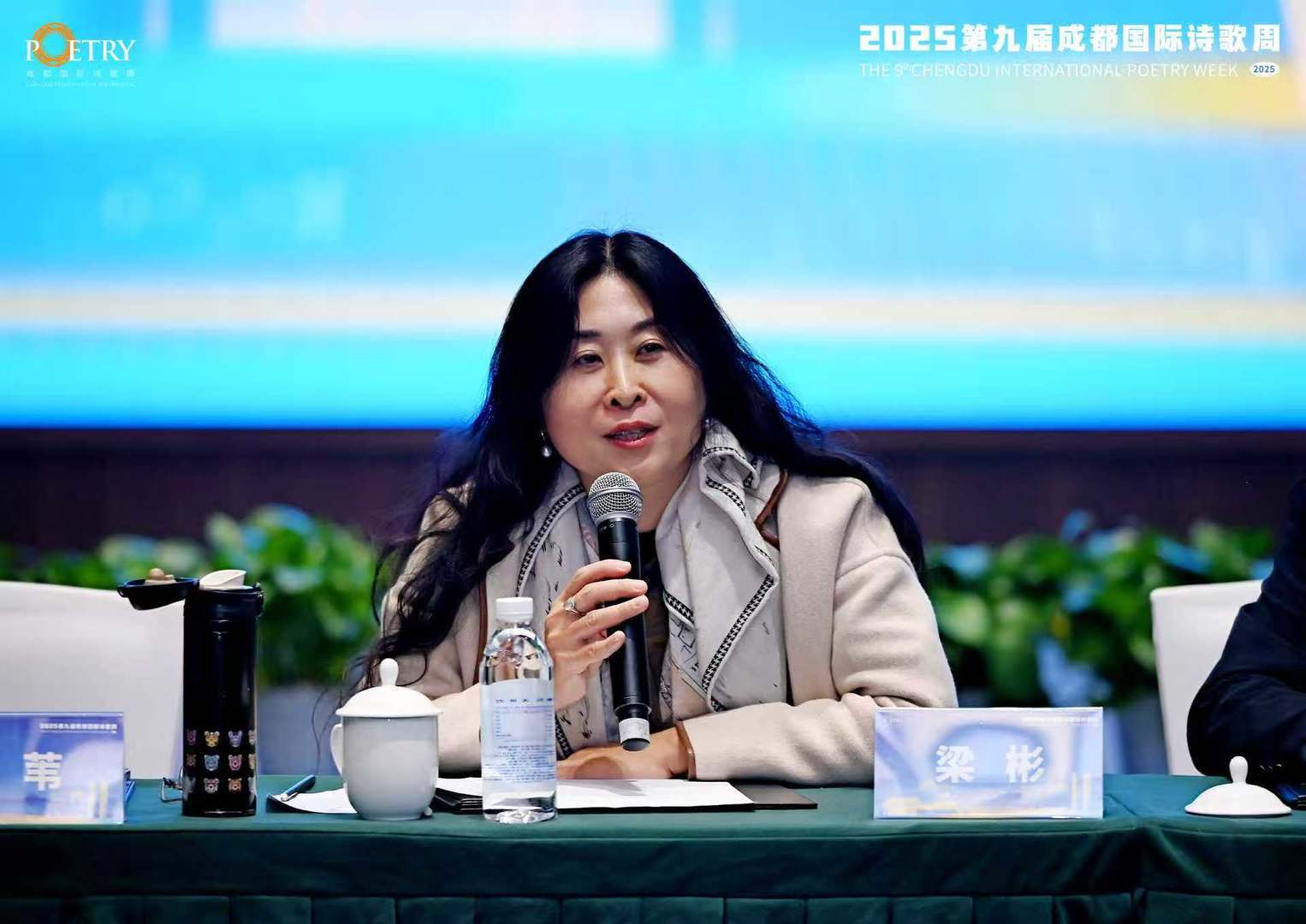 12月3日下午,参加第九届成都国际诗歌周的部分诗人嘉宾来到诗歌对话现场,就“诗歌的民族性、世界性和人类的共同家园”这一话题展开交流与分享。