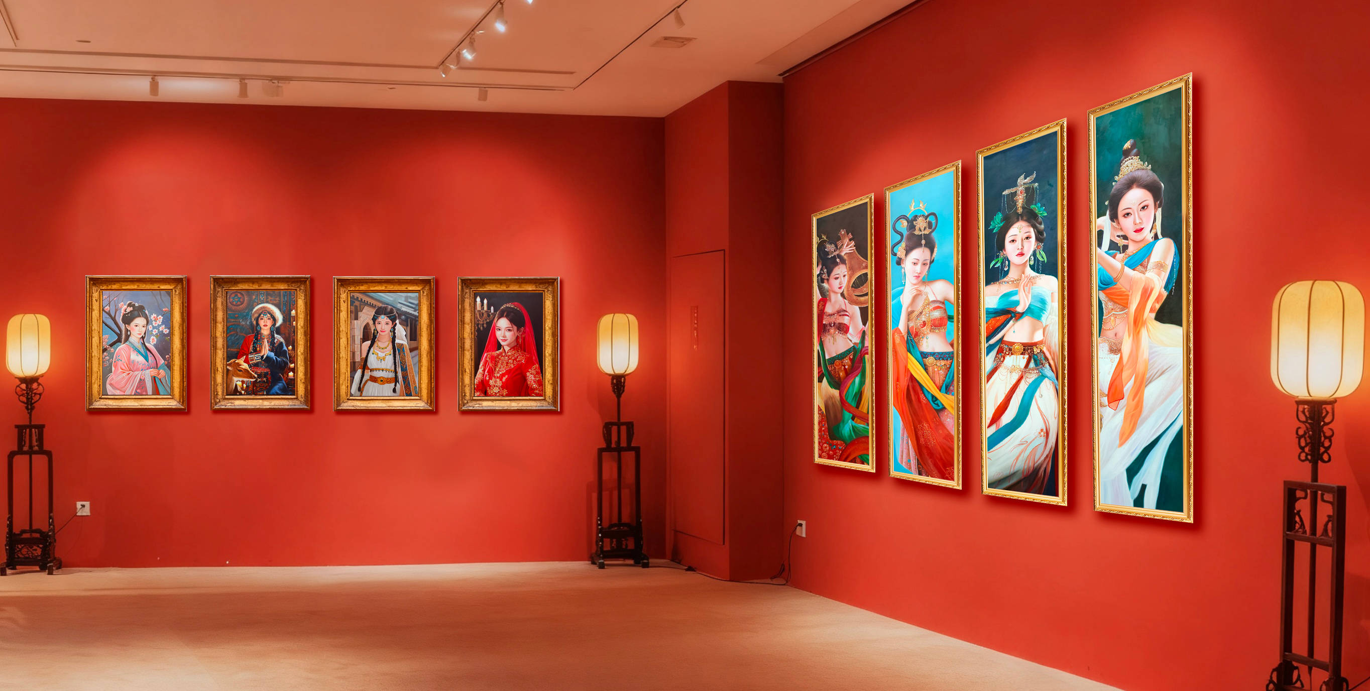 此次卢浮宫个展以“东方韵·写实魂”为主题,是蒋晓光继故宫献礼展览后的又一文化重磅实践,展品既包含故宫展览中的经典代表作,更有专为本次国际展创作的全新力作。作品延续了他独树一帜的艺术语言——既有着西方古典油画对光影、质感的极致把控,织物纹理、金属光泽、人物眼神均刻画得纤毫毕现;其中作品《敦煌飞天》《前世今生》,更以创新形式诠释了中西方艺术的碰撞与共生,实现了从“中国殿堂”到“世界殿堂”的艺术表达升级。