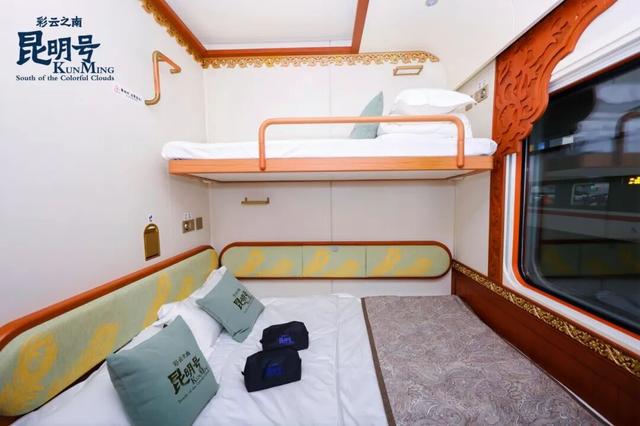 昆明文旅集团相关负责人介绍,列车定员264人,有安途尊享3人间、悦途品质4人间两种房型。其中,3人间配备多功能抽拉沙发床、独立干湿分离卫浴,并有防滑地板、适老化设计、紧急呼叫按钮等设施;4人间配备多功能桌、铺位遮光帘、可调节阅读灯,每节车厢设2个淋浴间、洗漱间和卫生间。彩云多功能车厢有54个餐位,提供云南特色菜品、素食菜品等多元餐饮服务。昆明文旅集团还将与百盛集团合作,在列车上推出免税店,方便游客购物。