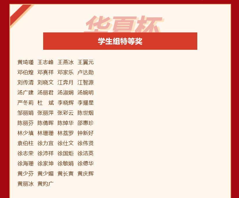 据网传获奖名单,极目新闻记者搜索发现,“华夏杯”成人组特等奖、一等奖、二等奖等奖项的获奖者名字与百度文库里“10000中国普通人名大全”的人名几乎一致;而学生组特等奖的获奖者名字与广州市某中学1994级初一某班花名册中的名字高度重合。有不少网友评论称:“演都不演了”“真的有点魔幻现实主义了”。