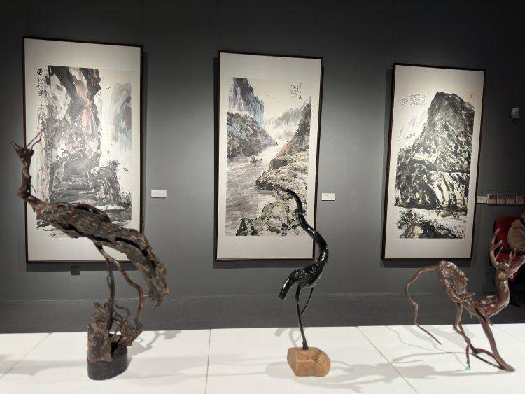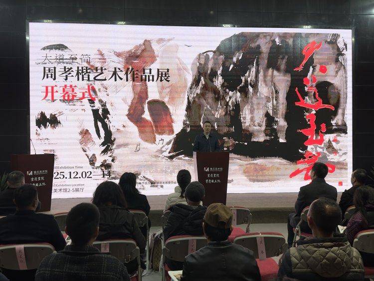 重庆美术馆(重庆画院)书记、馆长(院长)王发荣表示,通过周孝楷的作品,可以看到东方哲学与西方美学的对话。其中国画笔触酣畅如江流奔涌,油画则以苏式风格的厚重笔触描绘出了三峡的壮阔与人文的温情交融。展厅中陈列的根艺作品也展现了艺术家“以简驭繁”的美学追求。