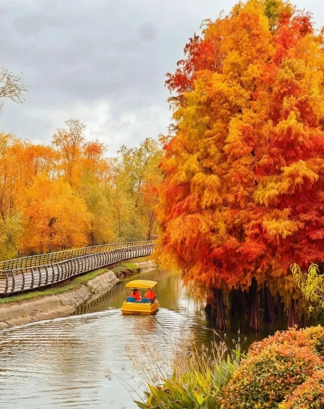 午饭后,驱车不过一刻钟便抵达西沙明珠湖公园景区——此行真正的惊喜所在。这里藏着一个沪上罕见的“水上森林”,而划船穿越其中,便是解锁它的唯一密钥。